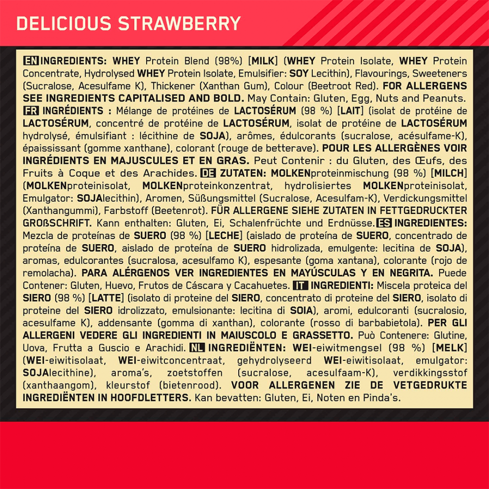 Сывороточный протеин Gold Standart 100% Whey / Производитель Optimum Nutrition / Страна происхождения США / Вес 2.28 кг / Вкус Delicious Strawberry - Изысканная клубника / Количество порций 76 / Протеина на порцию 24 г